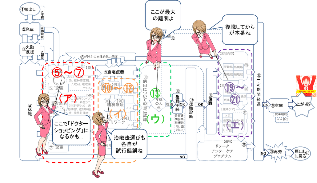 (エ) 第四のヤマ場 (すごろく図丸数字⑲~㉑:復職してからが本番)