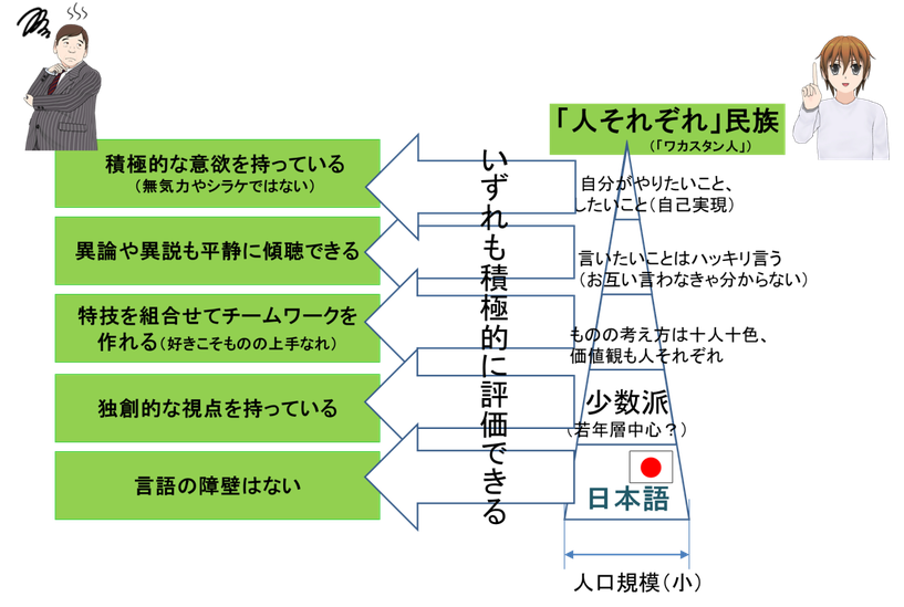 ワカスタン人たちの資質を組織にとっての美点として活かすのも、殺すのも、ムラスタン人側の心掛け次第なのである。